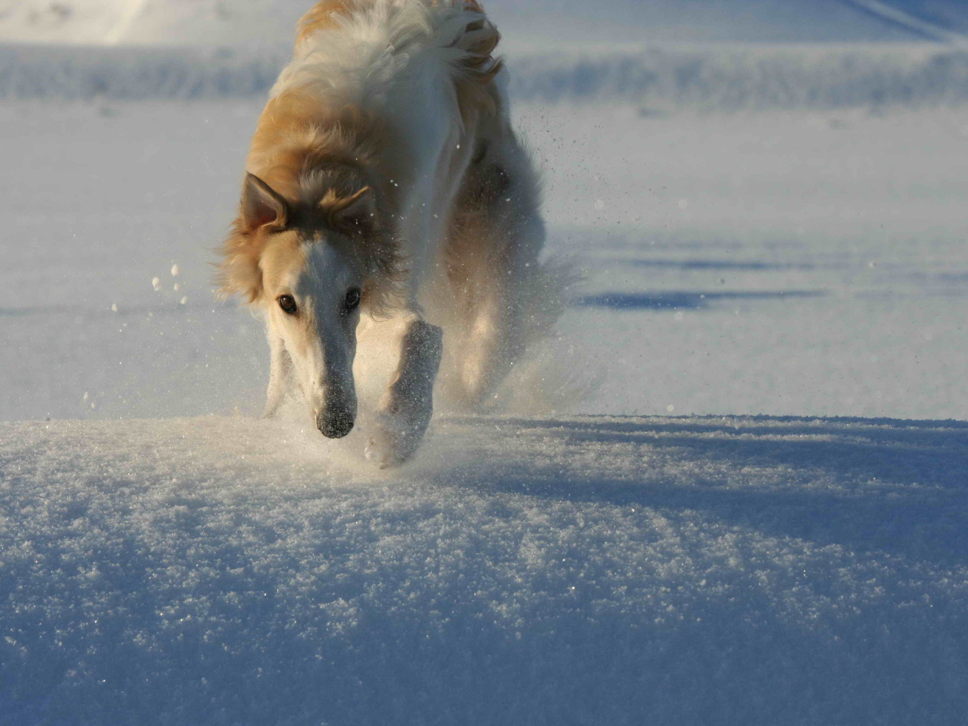 Борзая бежит по снегу Обои для рабочего стола 1400x1050