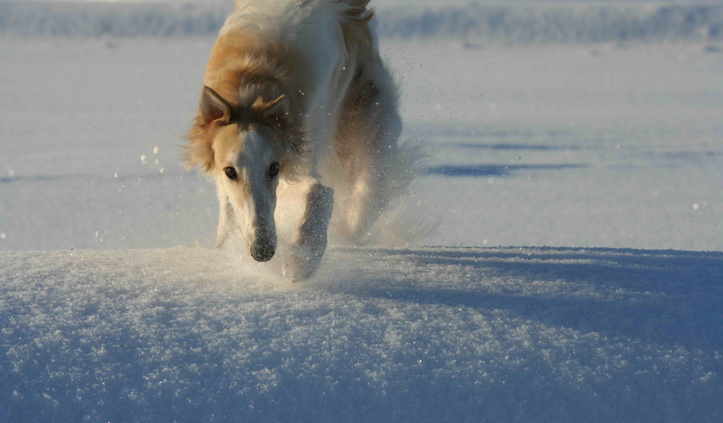 Борзая бежит по снегу Обои для рабочего стола 1024x600