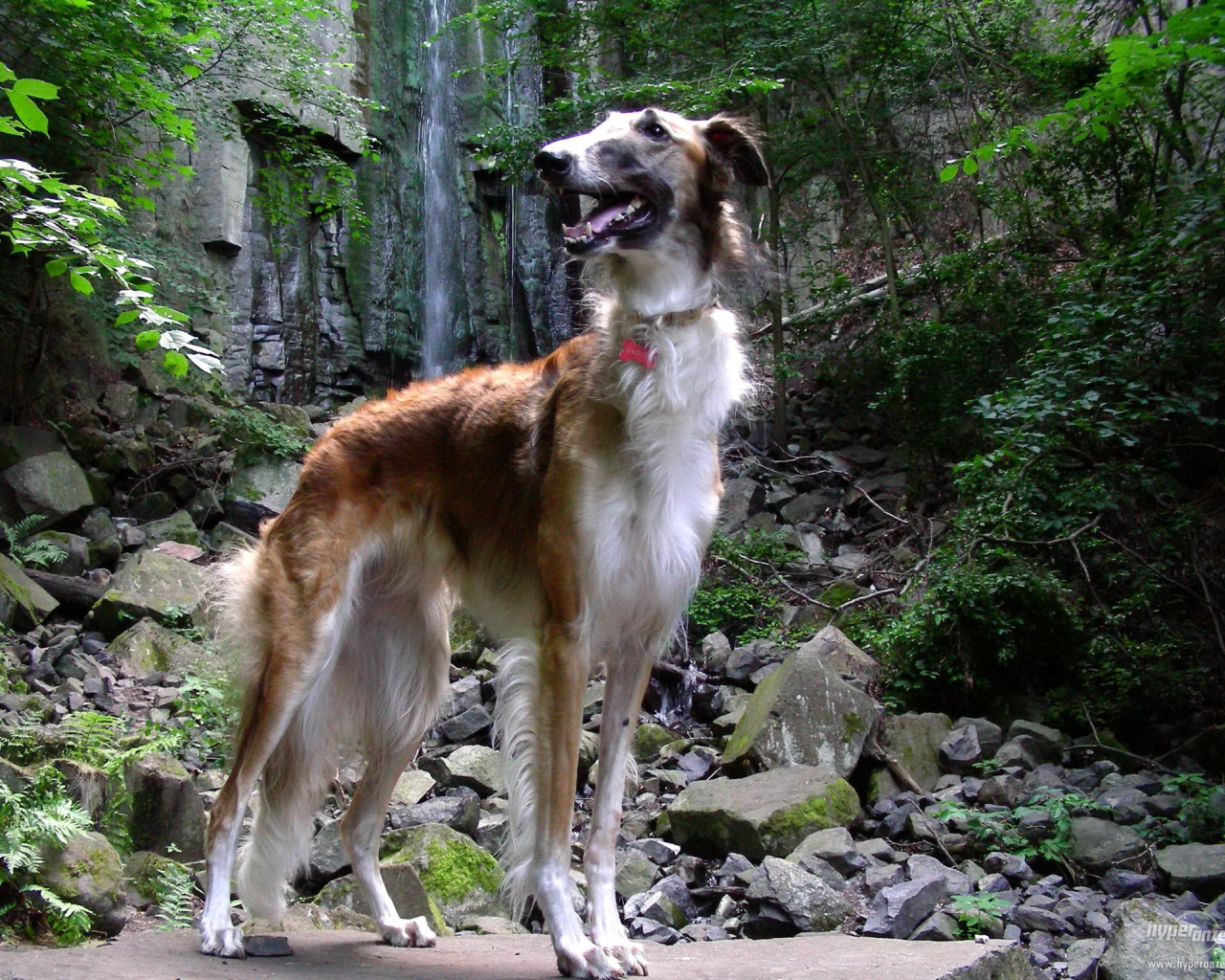 Русская борзая в лесу Обои для рабочего стола 1280x1024