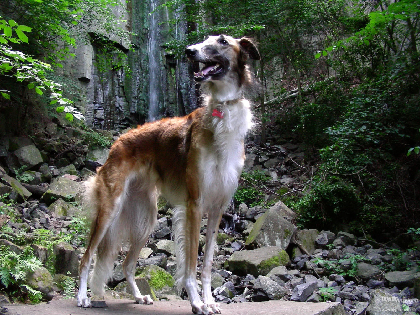 Русская борзая в лесу Обои для рабочего стола 1600x1200
