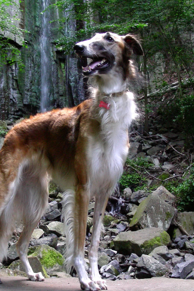 Русская борзая в лесу Обои для рабочего стола 640x960