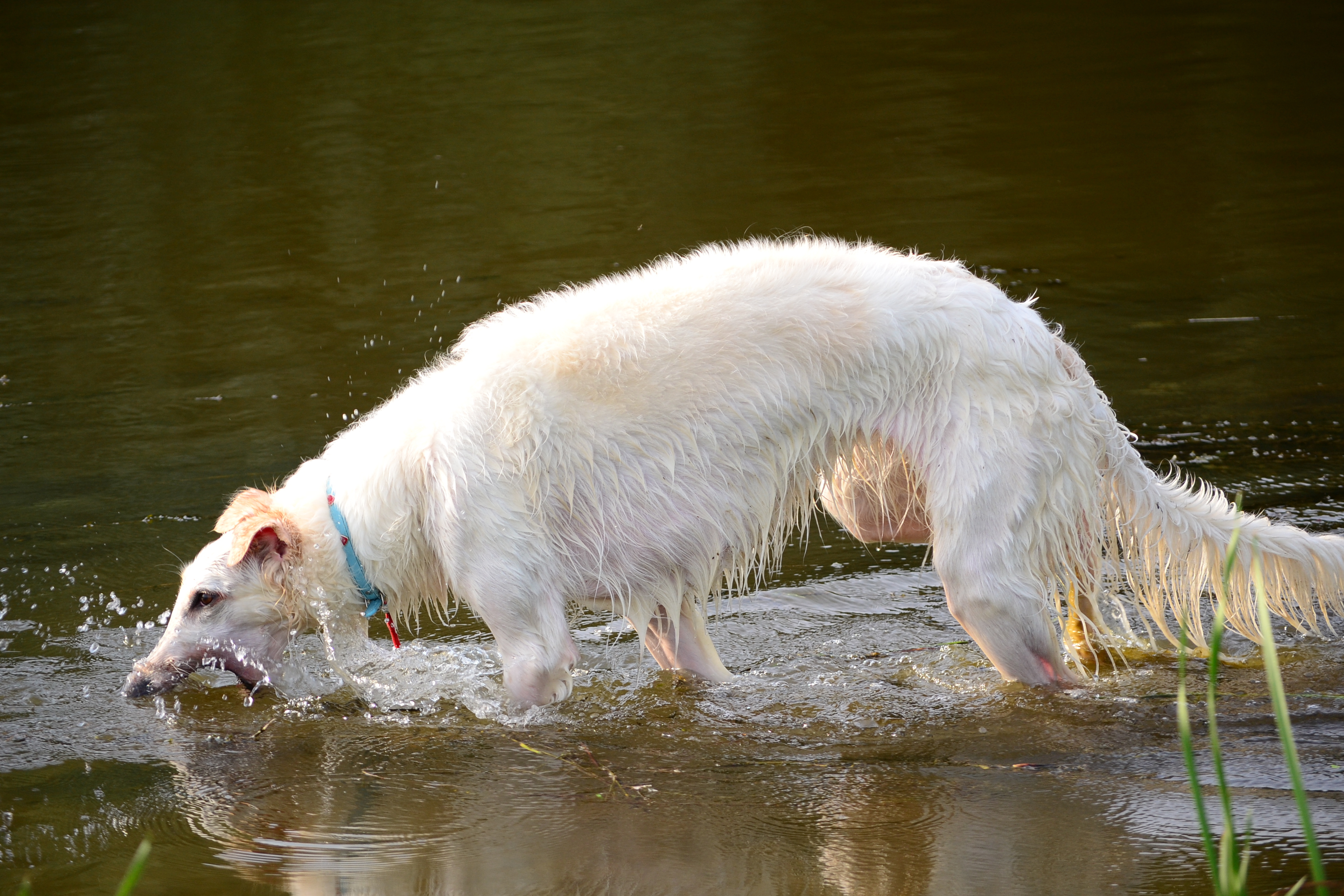 Борзая играет в воде - 3456x2304