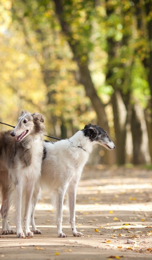 Девушка в красном с борзыми собаками Обои для рабочего стола 600x1024