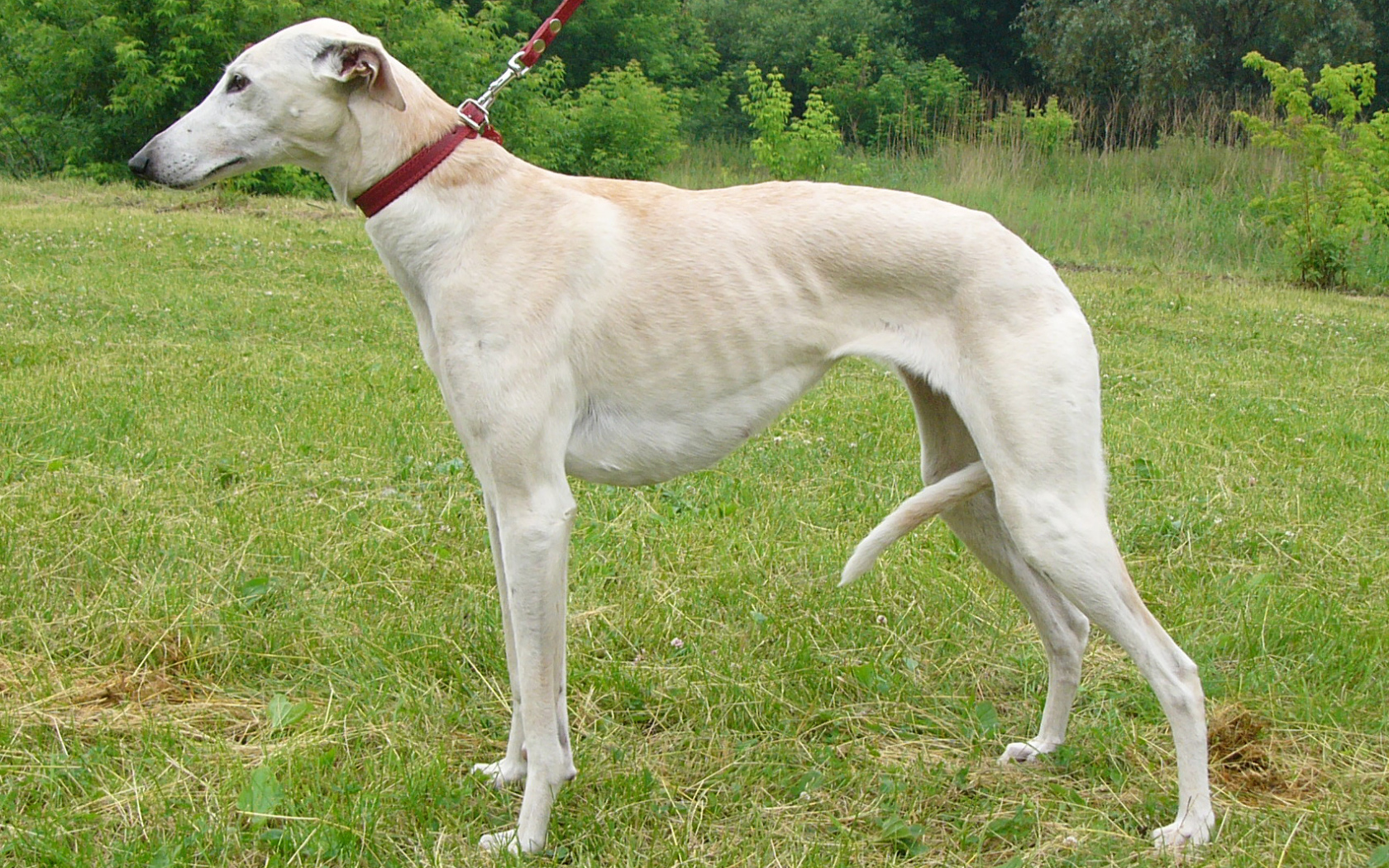 Борзая собака на поводке Обои для рабочего стола 1680x1050