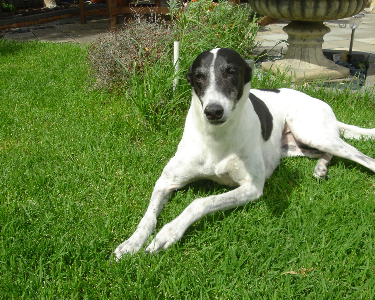 Милый борзой пес на газоне Обои для рабочего стола 1280x1024