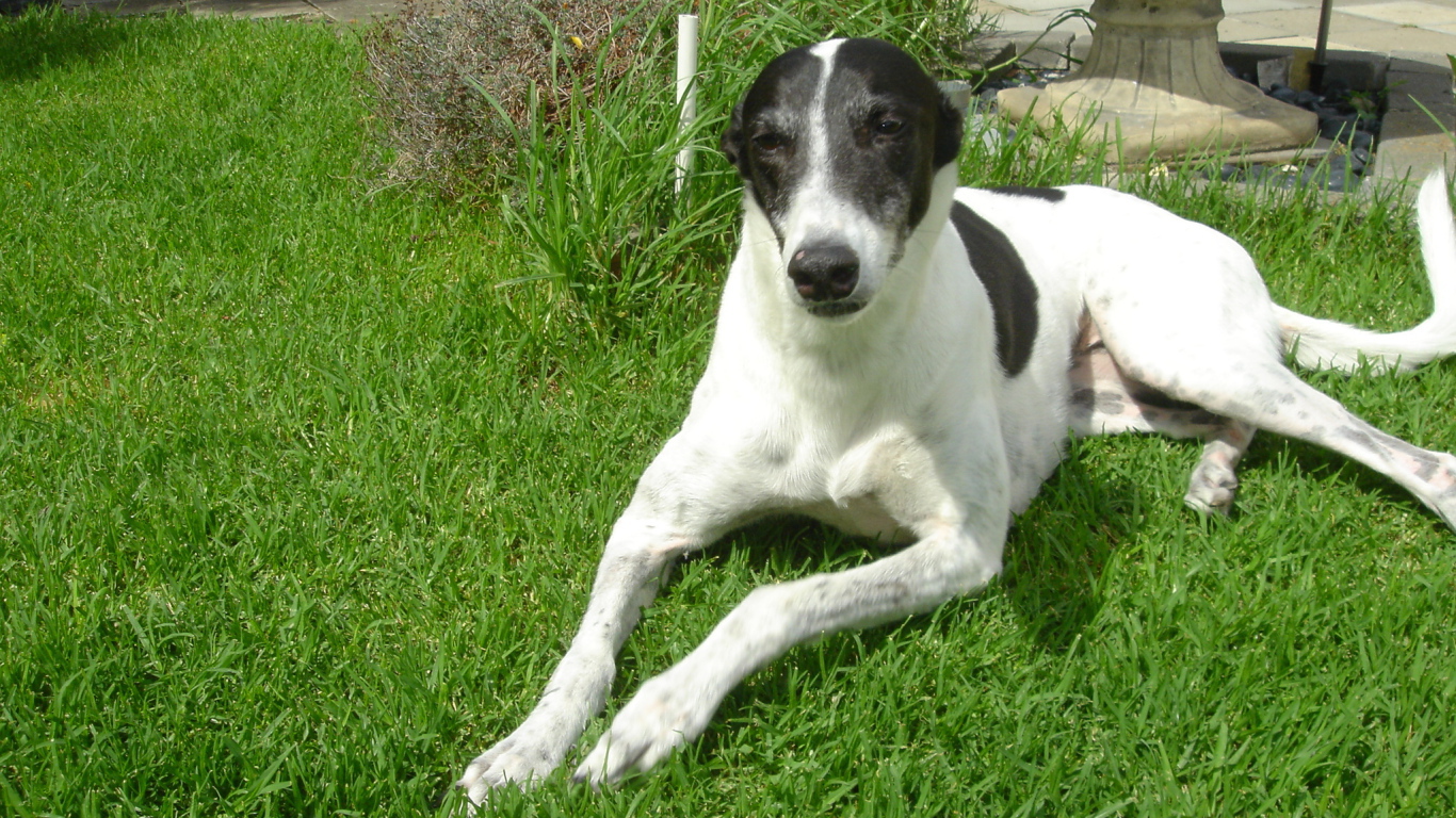 Милый борзой пес на газоне Обои для рабочего стола 1366x768