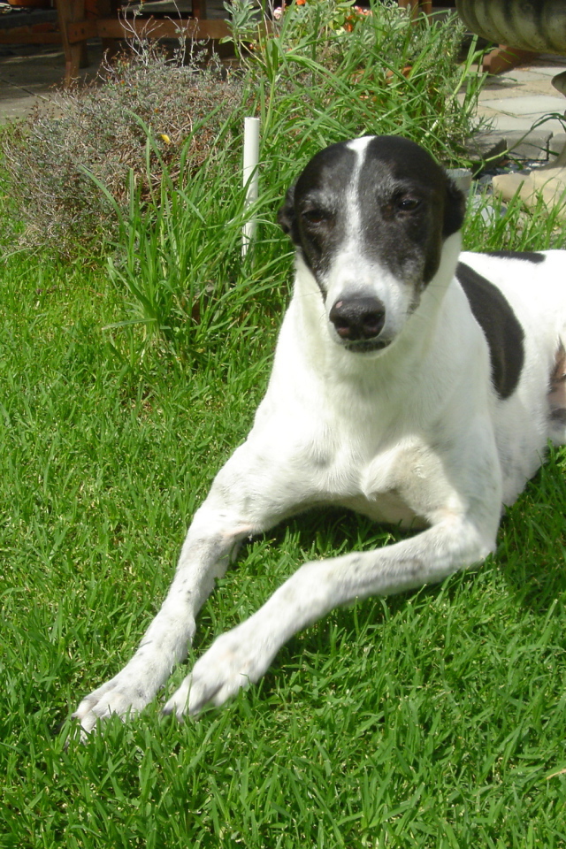 Милый борзой пес на газоне Обои для рабочего стола 640x960
