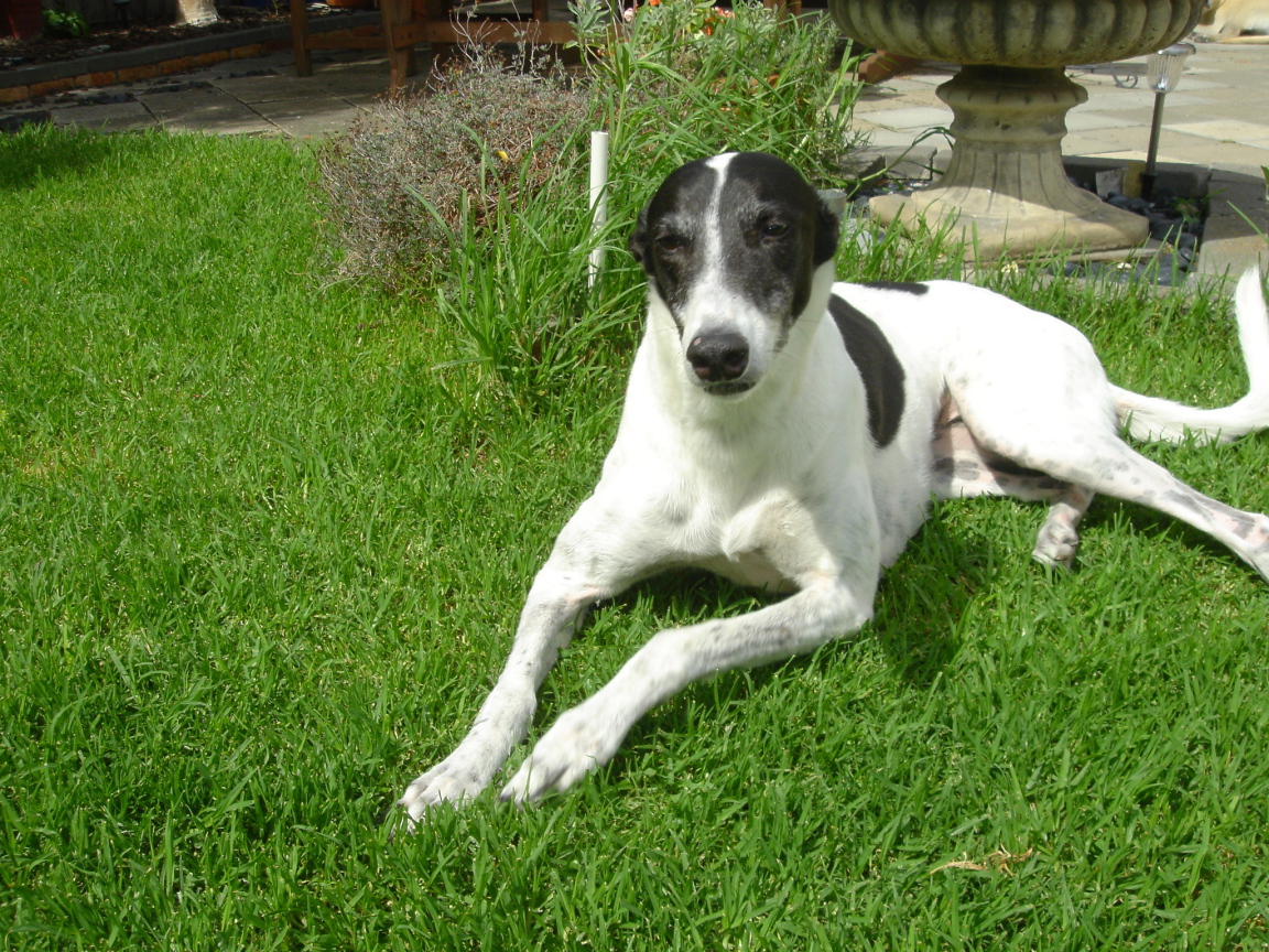 Милый борзой пес на газоне Обои для рабочего стола 1152x864