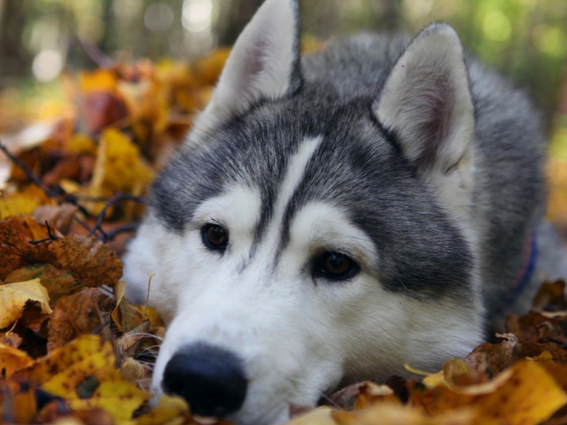 Лайка на осенних листьях Обои для рабочего стола 1152x864
