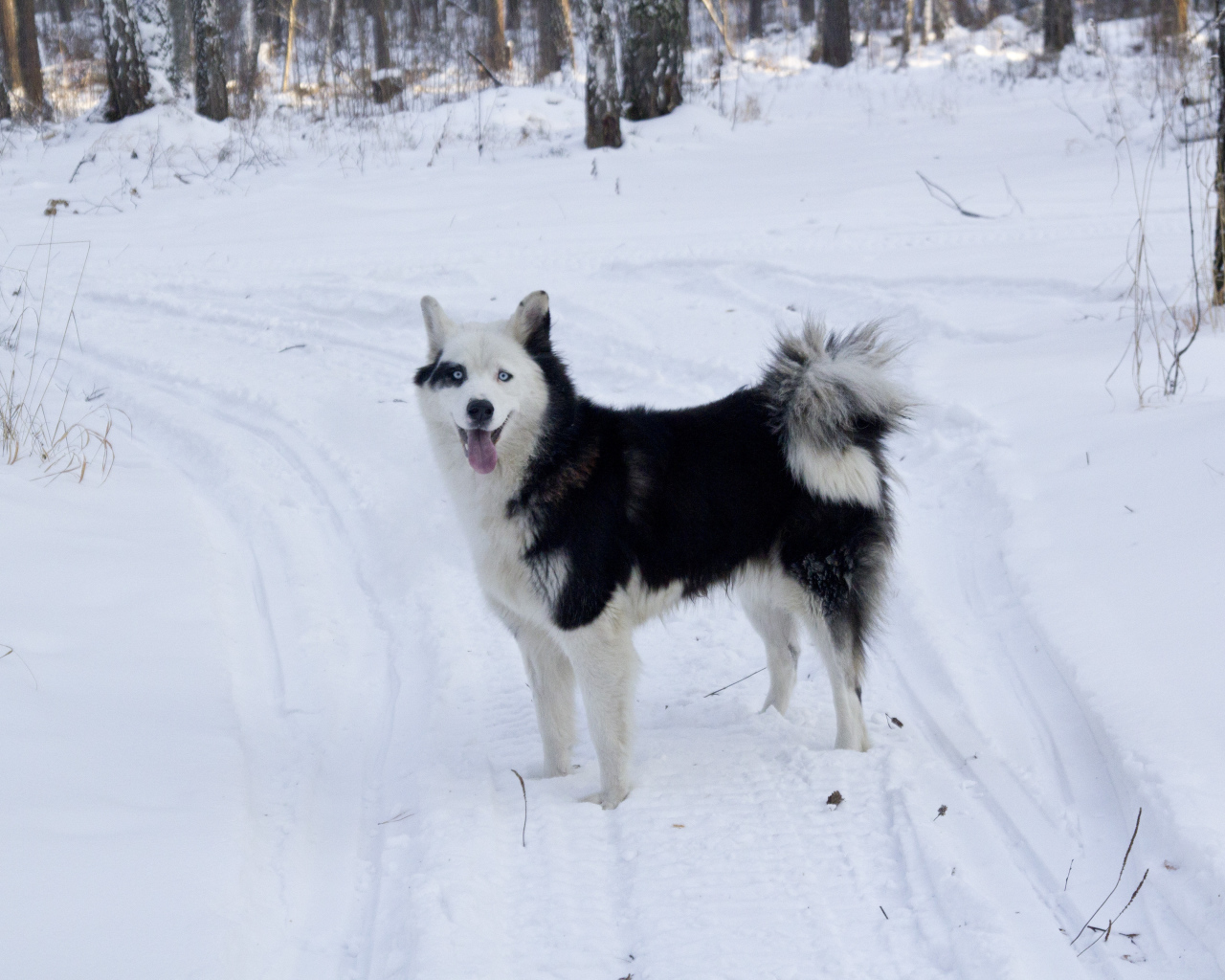 Черно белая лайка на снегу Обои для рабочего стола 1280x1024