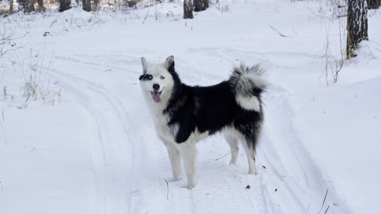 Черно белая лайка на снегу Обои для рабочего стола 1280x720
