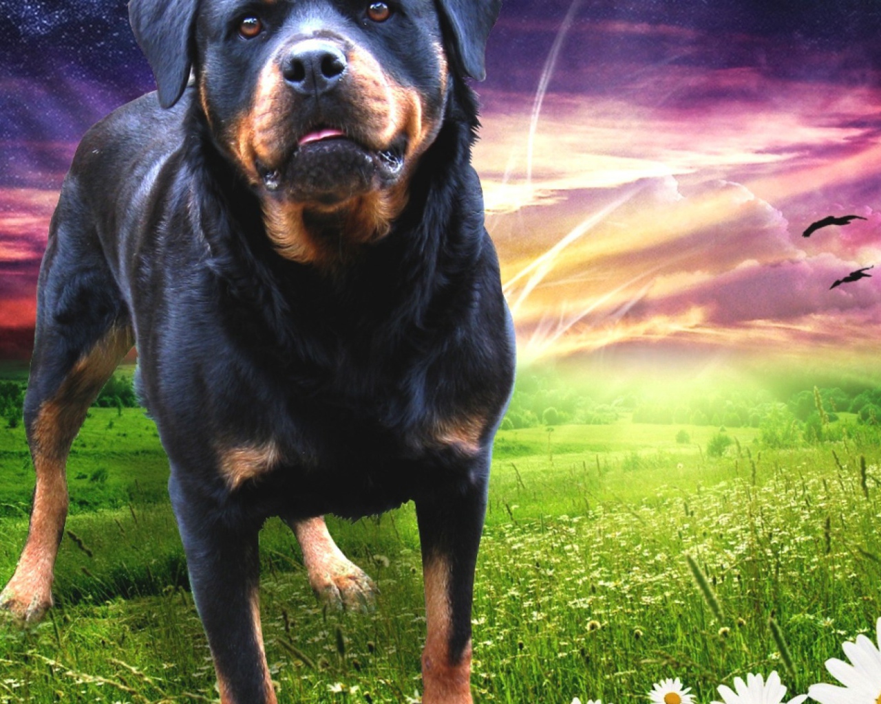 Ротвейлер на фоне сияния Обои для рабочего стола 1280x1024