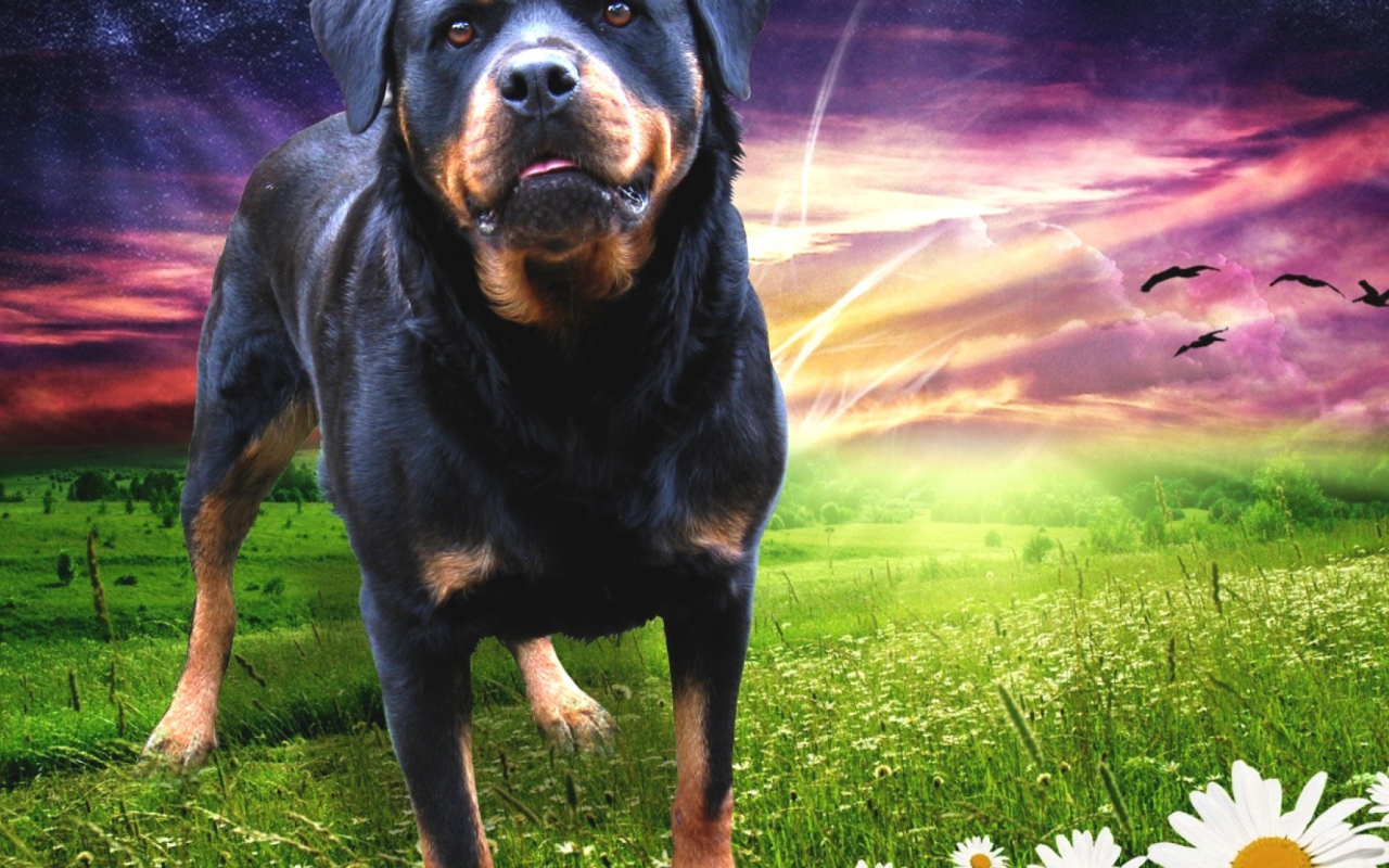 Ротвейлер на фоне сияния Обои для рабочего стола 1280x800