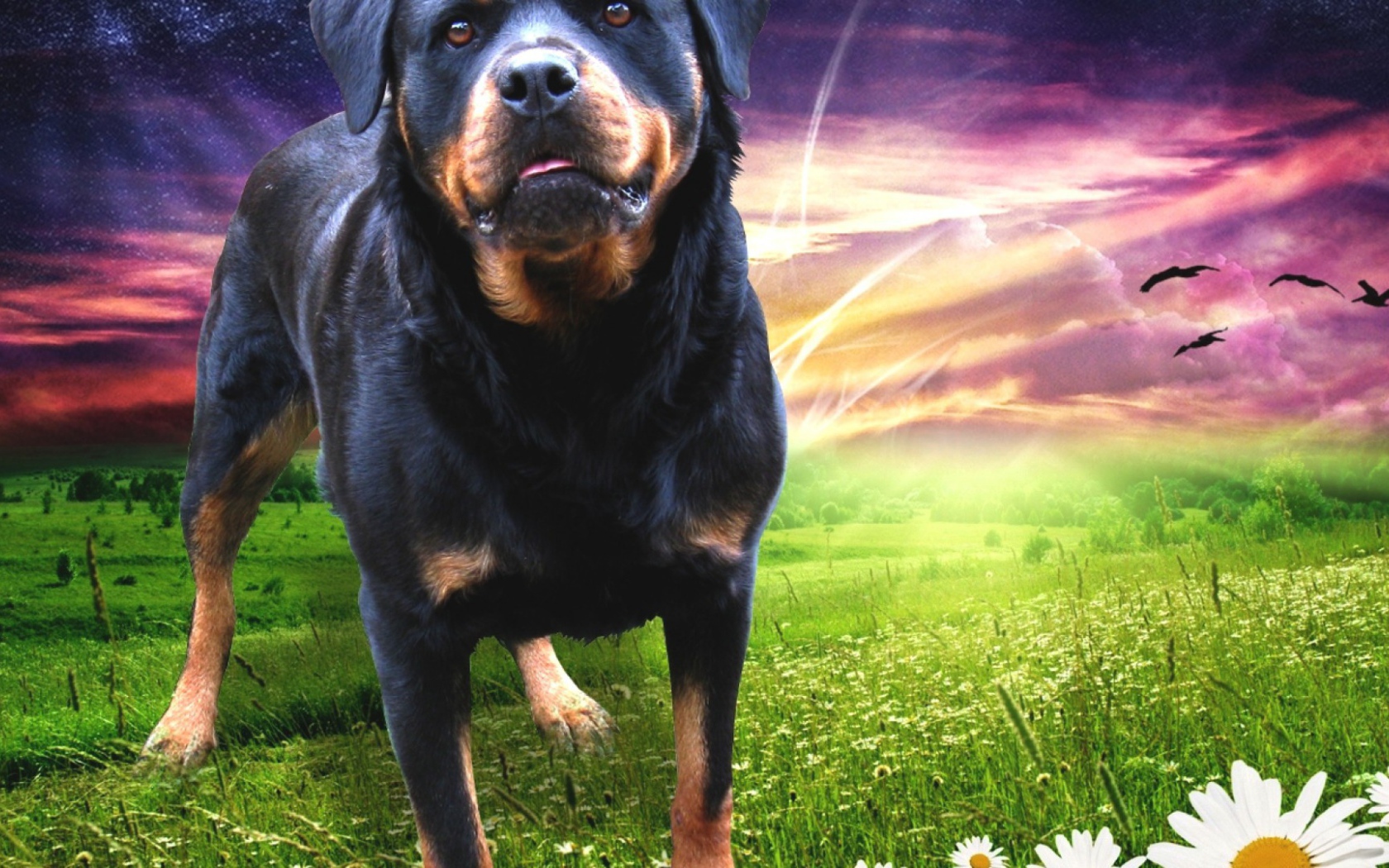 Ротвейлер на фоне сияния Обои для рабочего стола 1680x1050