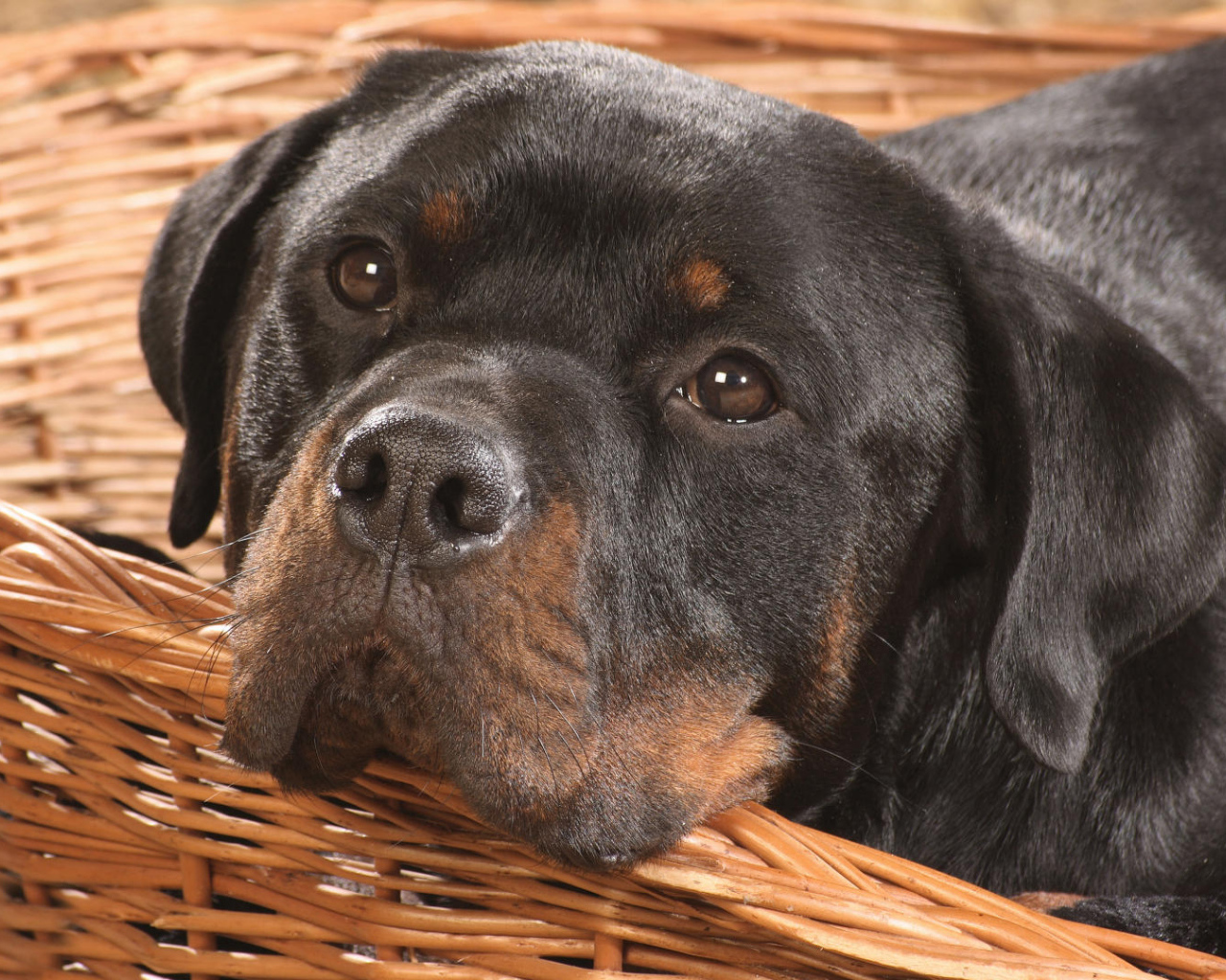 Ротвейлер в корзине Обои для рабочего стола 1280x1024