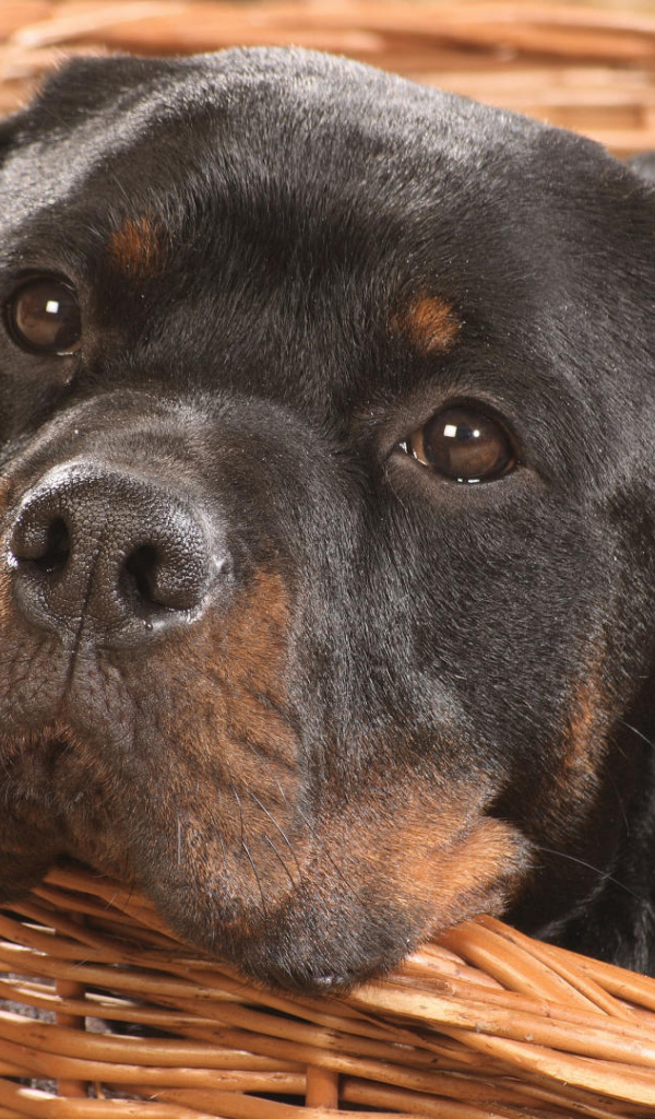 Ротвейлер в корзине Обои для рабочего стола 600x1024