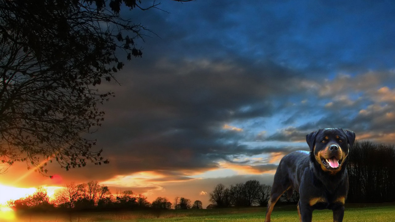 Ротвейлер на фоне заката Обои для рабочего стола 1280x720