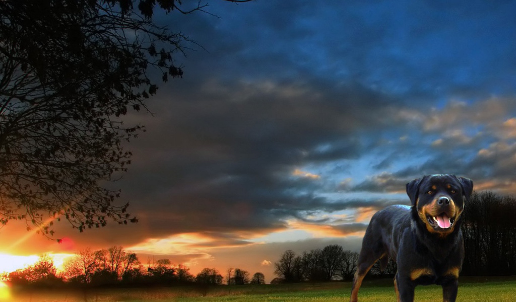 Ротвейлер на фоне заката Обои для рабочего стола 1024x600