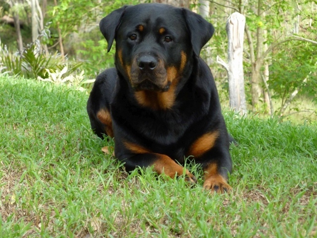 Собака ротвейлер в весеннем лесу - 1920x1200