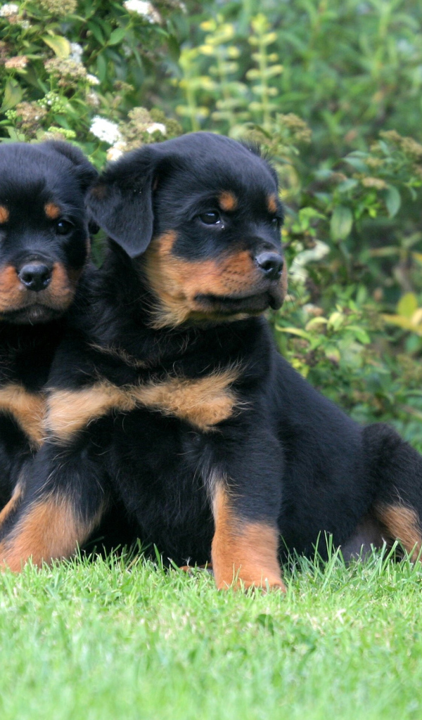 Пара щенков ротвейлера Обои для рабочего стола 600x1024