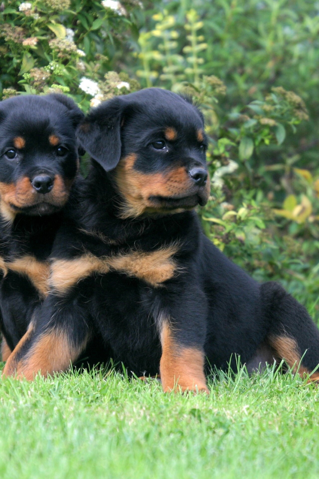 Пара щенков ротвейлера Обои для рабочего стола 640x960