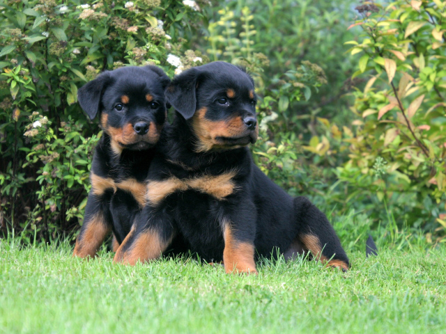Обои: Пара щенков ротвейлера