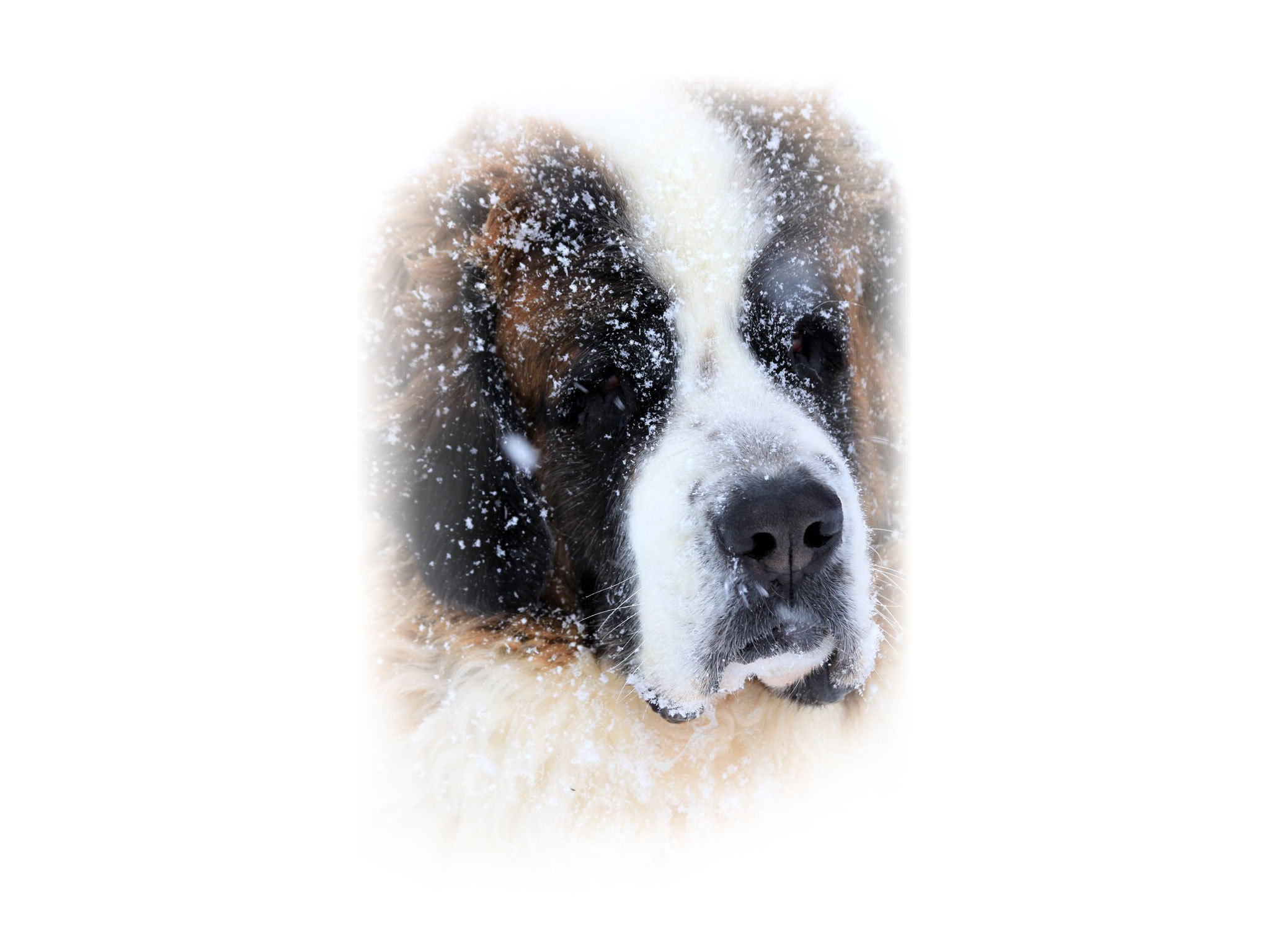 Сенбернара присыпало снегом - 2048x1536