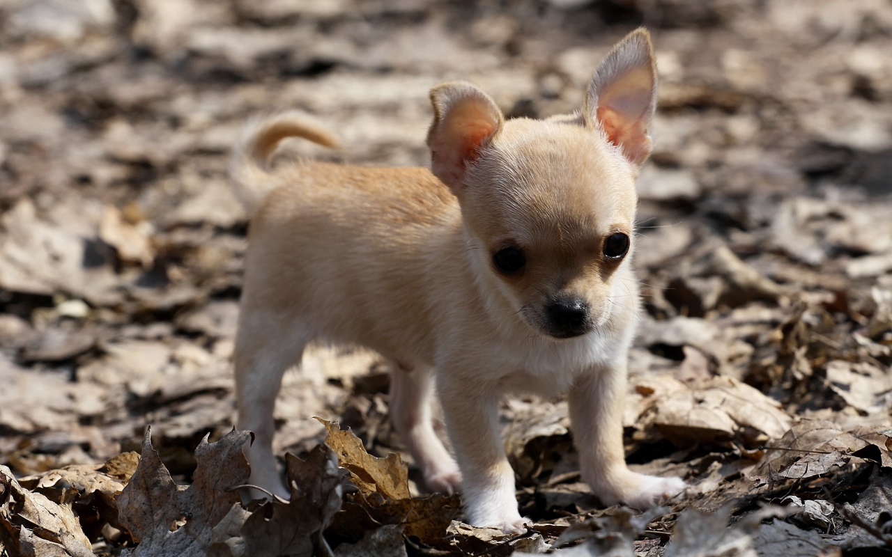 Щенок чихуахуа на листьях Обои для рабочего стола 1280x800