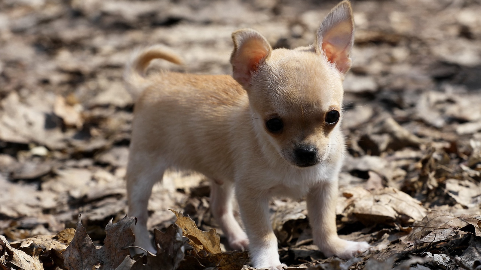 Щенок чихуахуа на листьях Обои для рабочего стола 1600x900