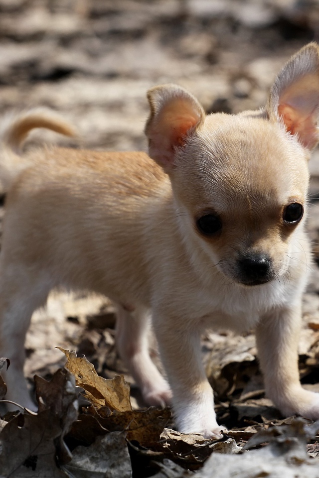 Щенок чихуахуа на листьях Обои для рабочего стола 640x960