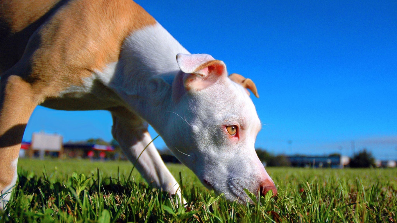 Питбуль берет след Обои для рабочего стола 1366x768