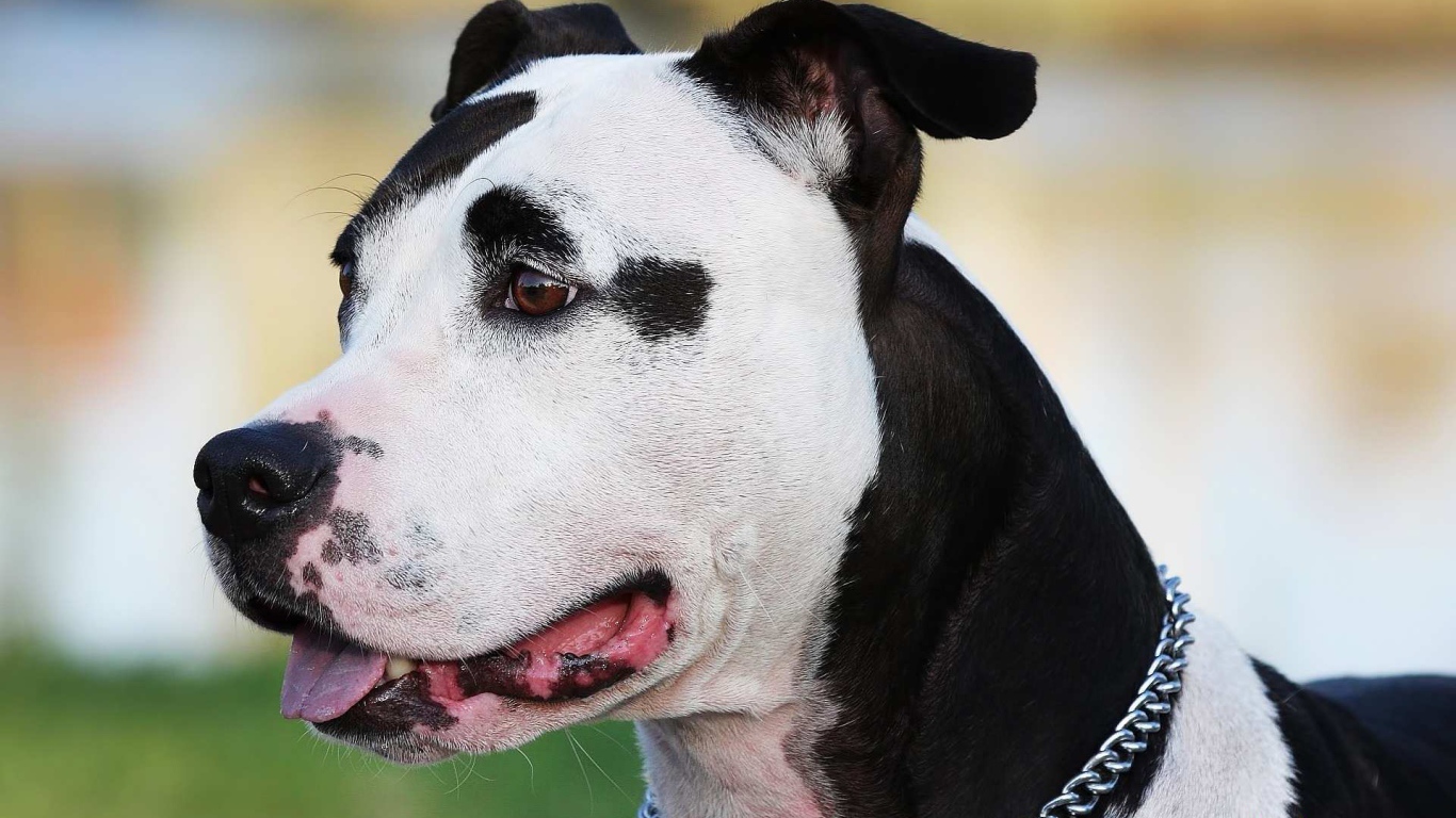 Черно белый американский стаффордширский терьер Обои для рабочего стола 1366x768
