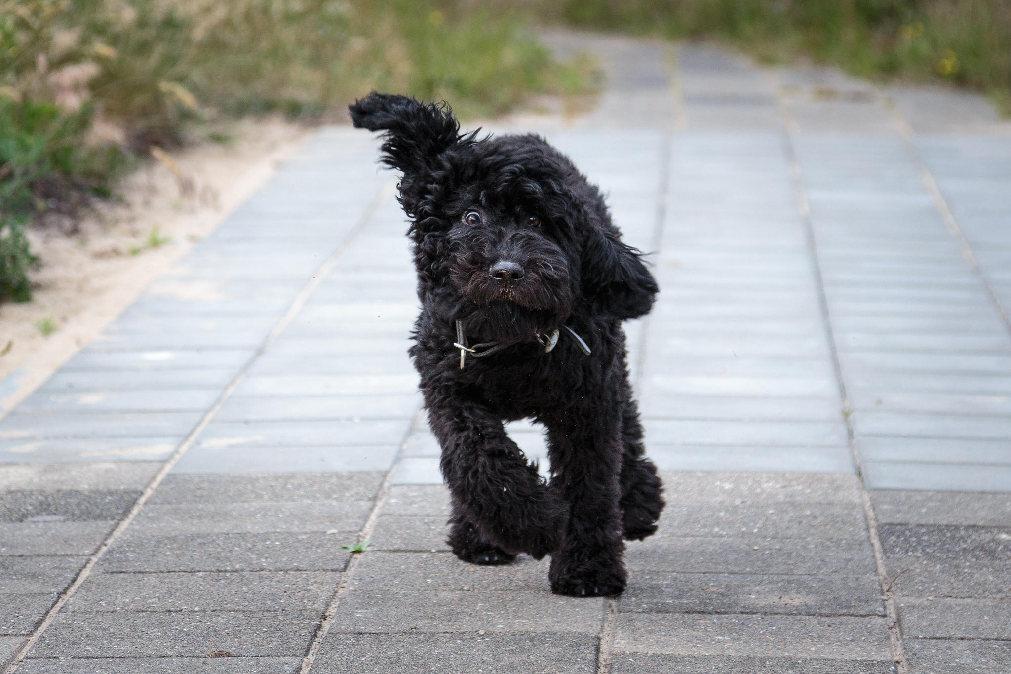 Собака барбет бежит по тротуару - 2048x1365