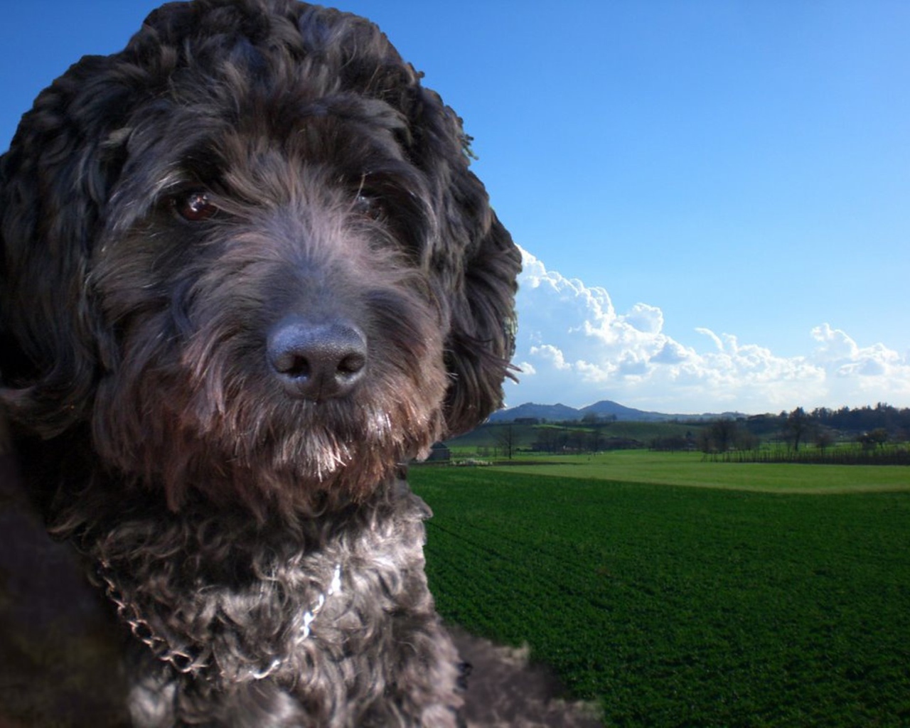 Собака барбет на фоне поля Обои для рабочего стола 1280x1024