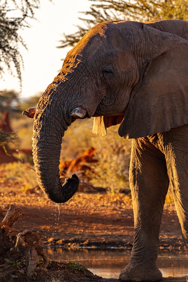 Большой серый слон пьет воду из реки Обои для рабочего стола 640x960