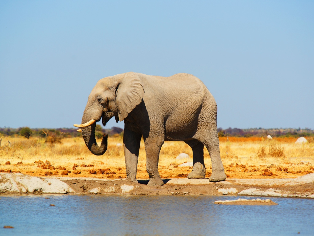 Большой африканский слон у воды Обои для рабочего стола 1024x768