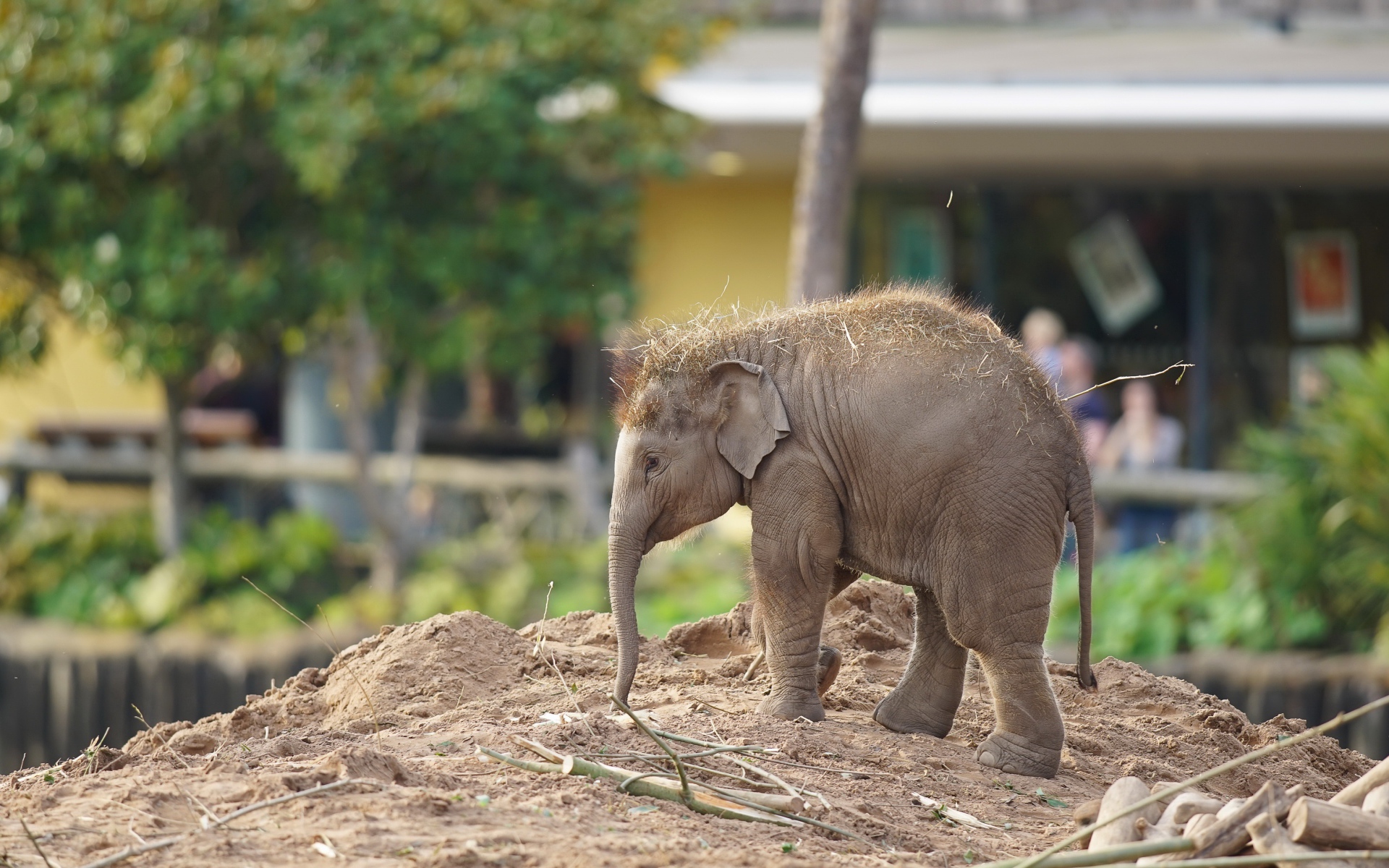 Маленький слоненок в зоопарке Обои для рабочего стола 1920x1200