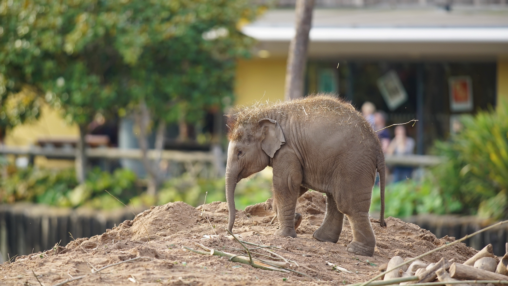 Маленький слоненок в зоопарке Обои для рабочего стола 1920x1080
