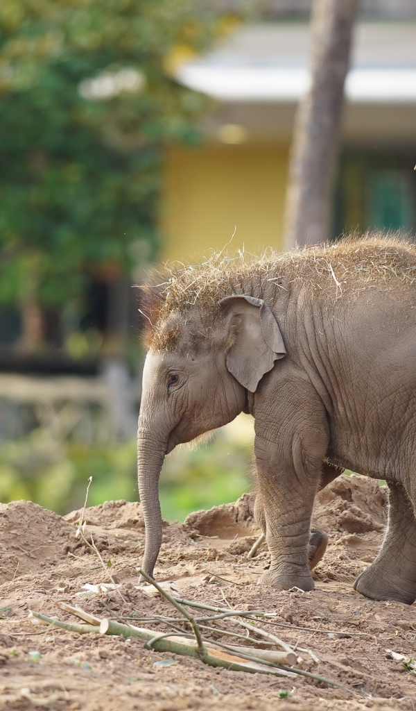 Маленький слоненок в зоопарке Обои для рабочего стола 600x1024