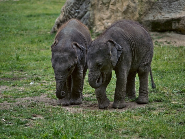 Два маленьких слоненка на зеленой траве - 3840x2866
