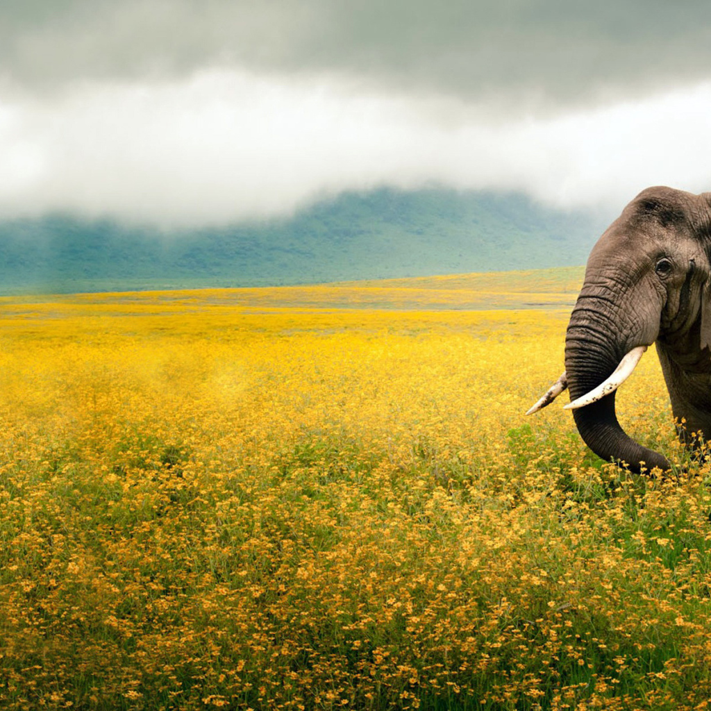 Слон на поле Обои для рабочего стола 1024x1024