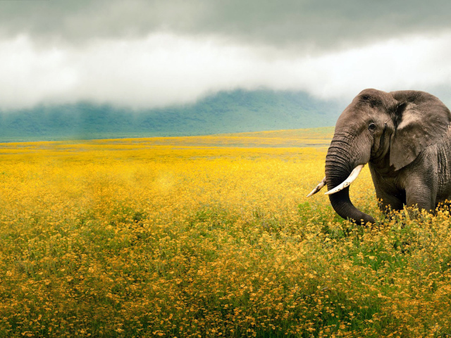 Обои: Слон на поле