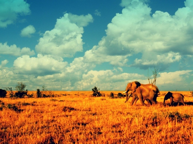 Обои: Слоны в саванне