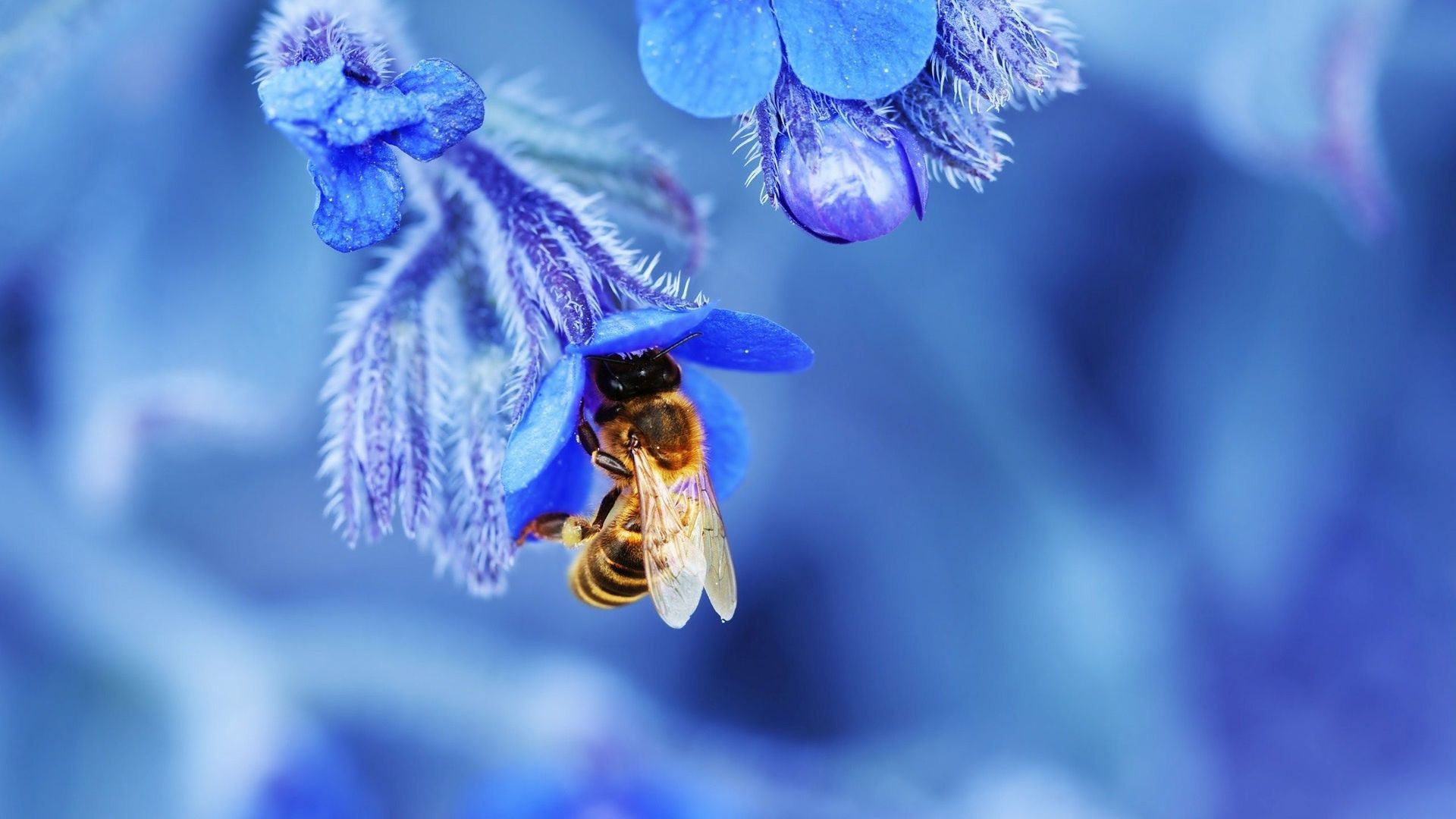 Обои: Пчела в голубом колокольчике собирает нектар