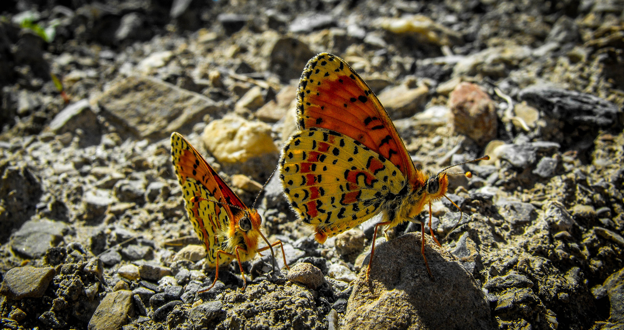 Две бабочки сидят на камне крупным планом - 2048x1085