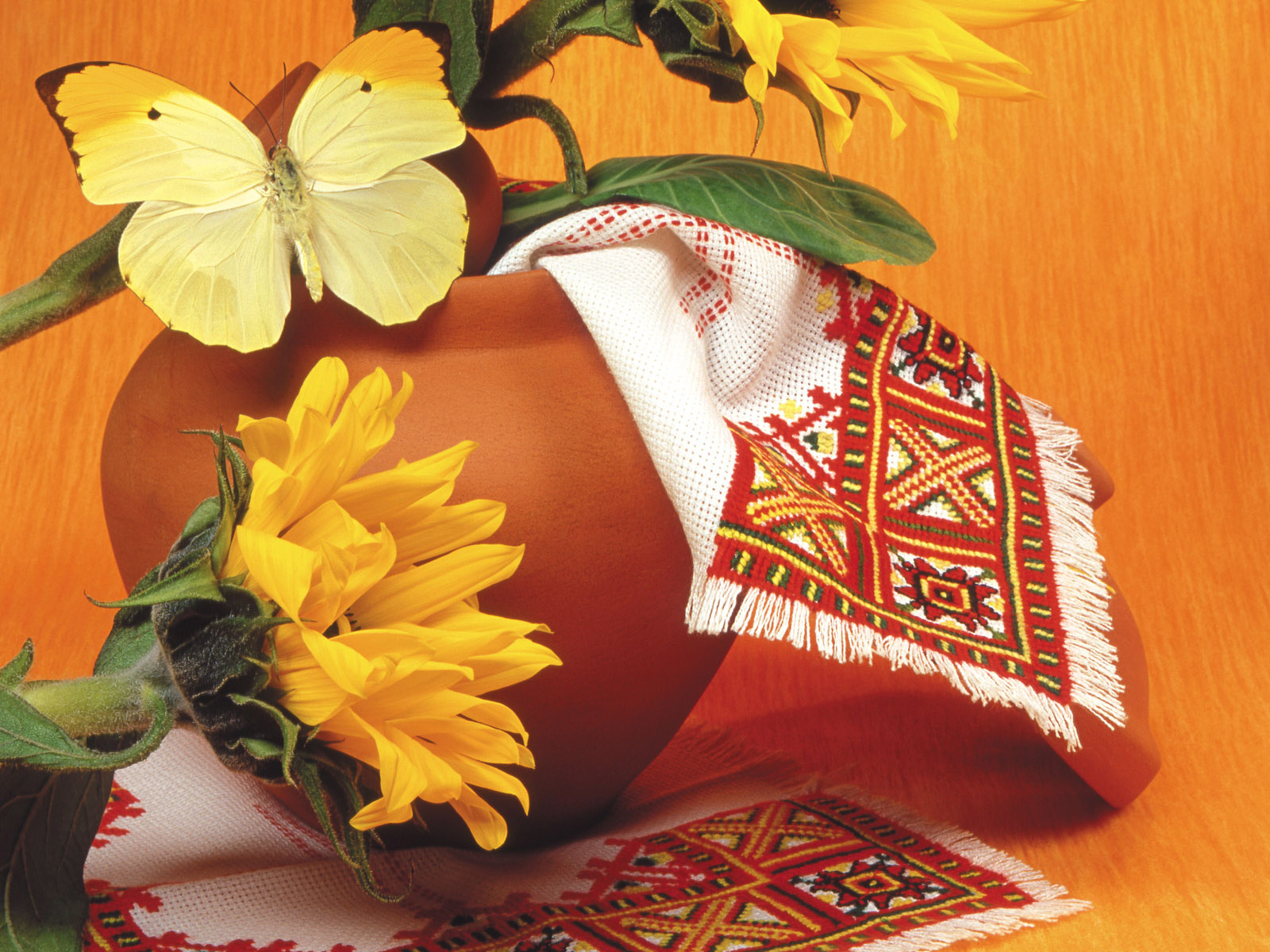 Красивая желтая бабочка на горшке - 1600x1200