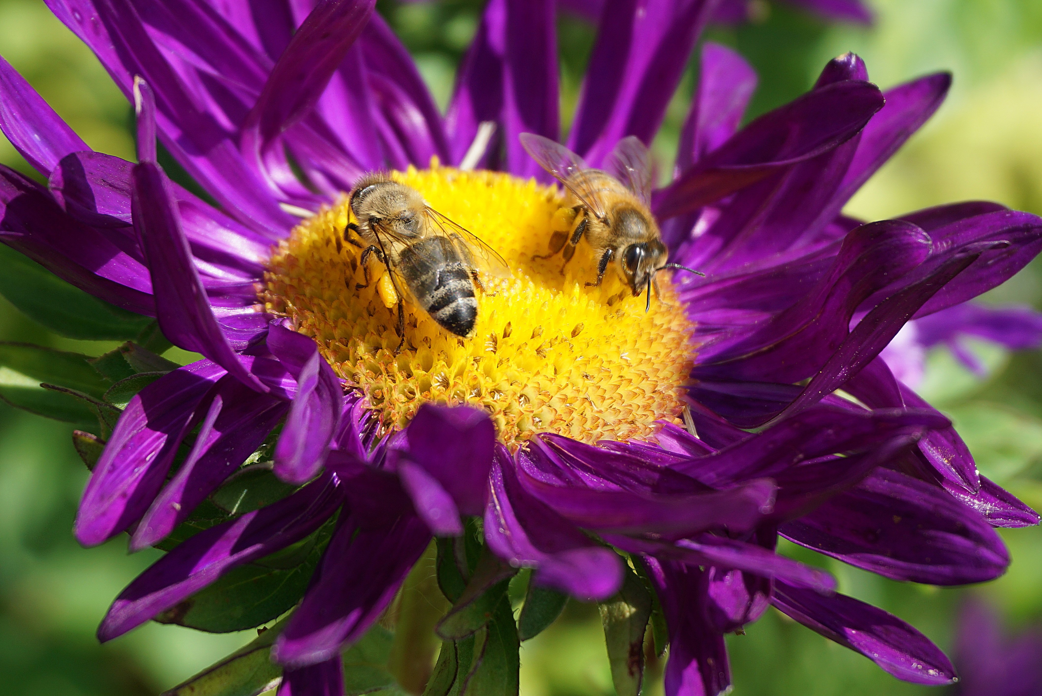Две пчелы сидят на цветке астры - 4240x2832