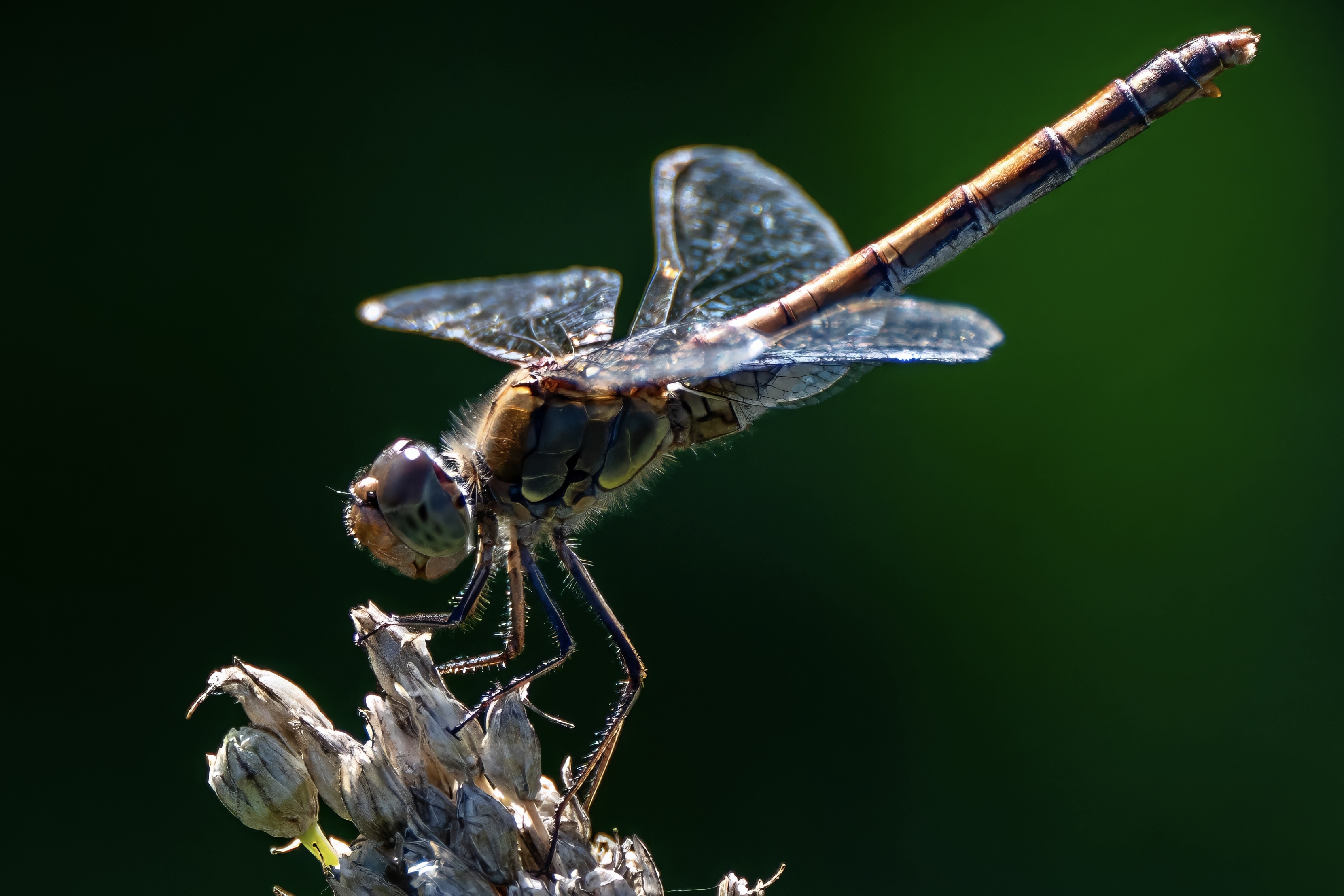 Стрекоза на сухом растении крупным планом - 3322x2215