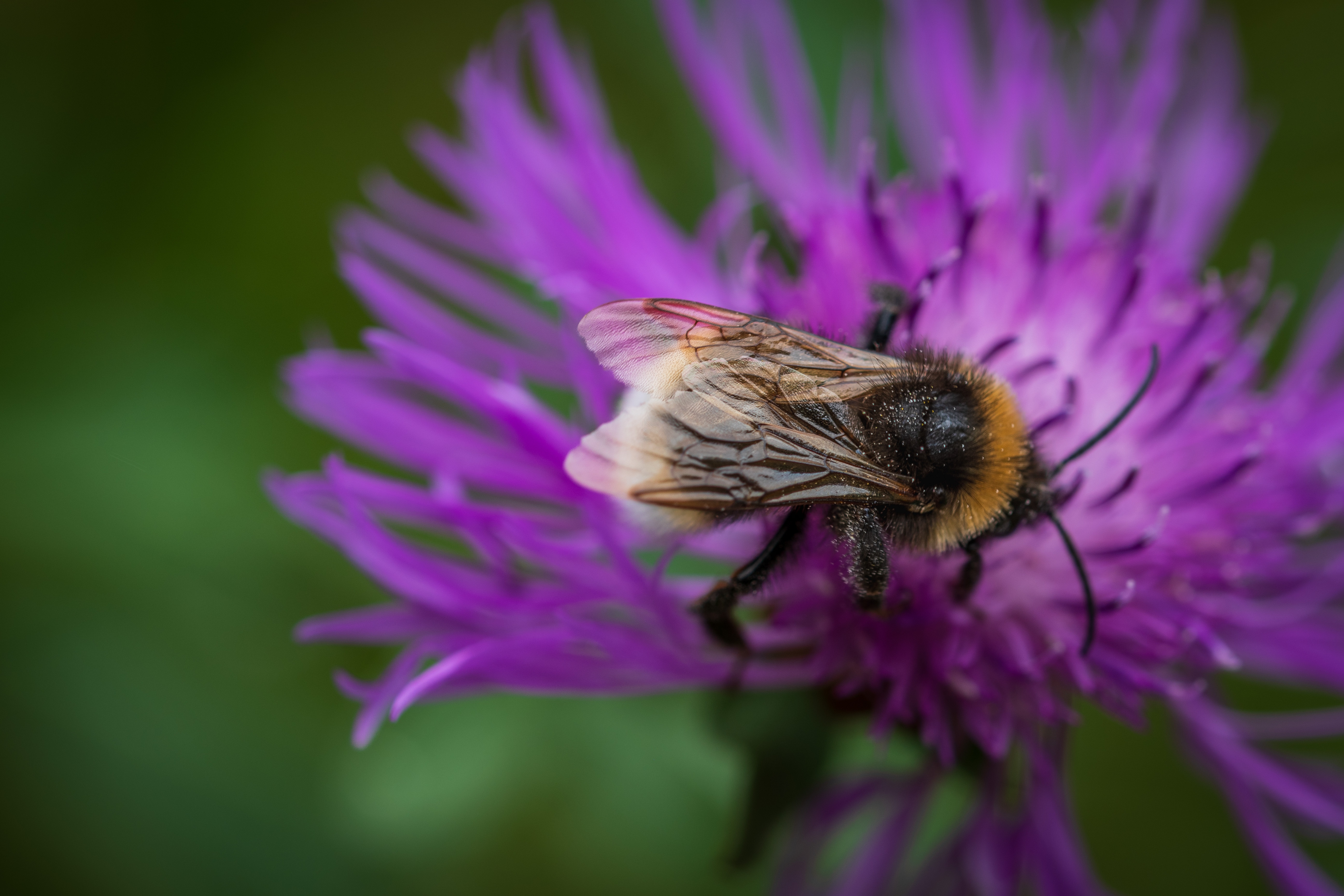 Маленький шмель опыляет розовый цветок - 5568x3712