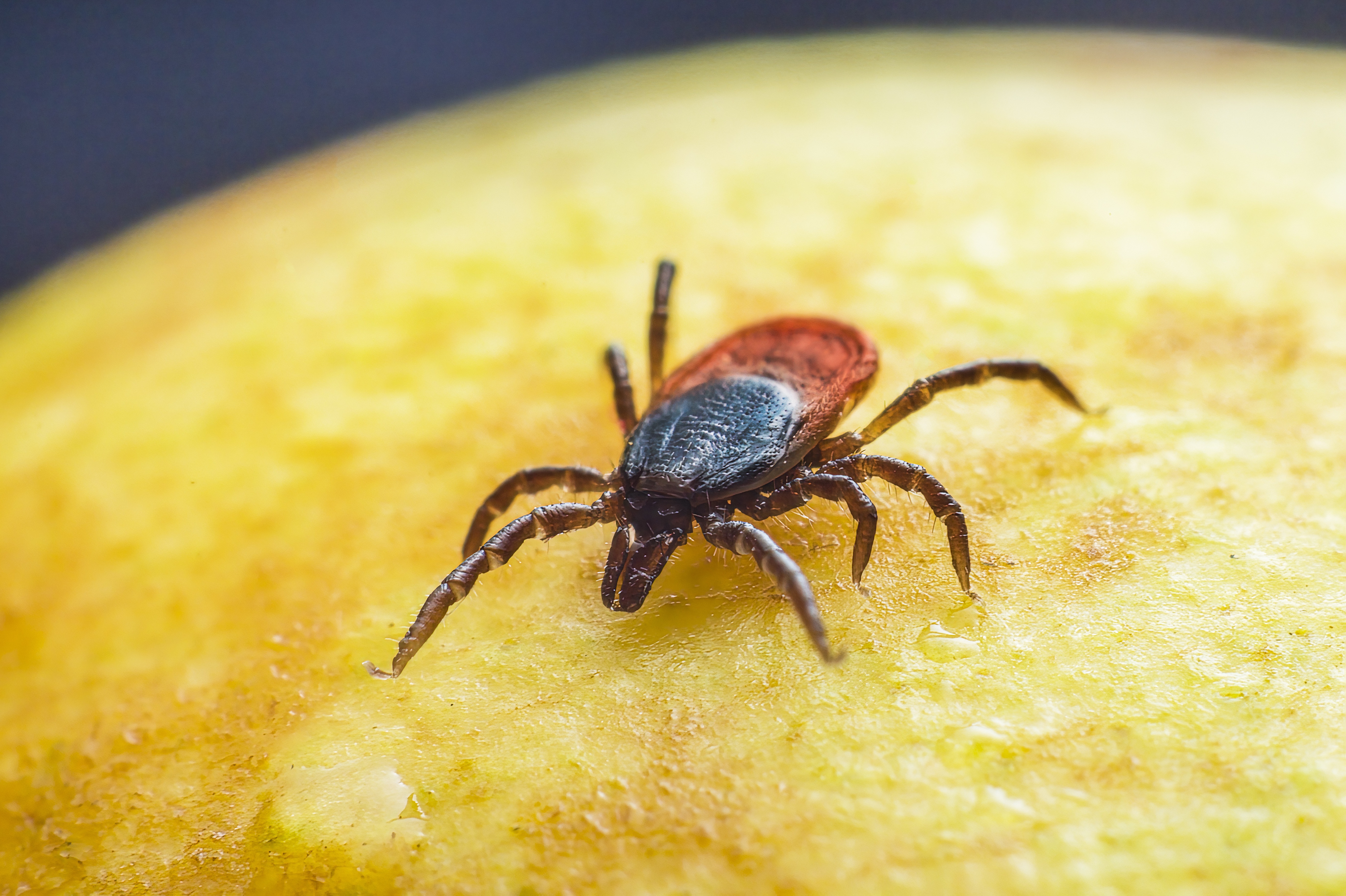 Клещ на желтой поверхности крупным планом - 5501x3663